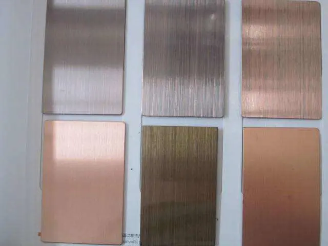 Ngoài ra, chúng tôi cũng có thể làm bề mặt màu vàng và các màu khác, Quá trình tạo màu bề mặt của thép không gỉ có thể mang lại các màu sắc khác nhau cho thép không gỉ, làm cho kim loại có nhiều màu sắc hơn.Màu sắc không chỉ làm cho thép không gỉ có hình thức phong phú hơn mà còn có thể cải thiện hiệu quả khả năng chống mài mòn và chống ăn mòn của sản phẩm.